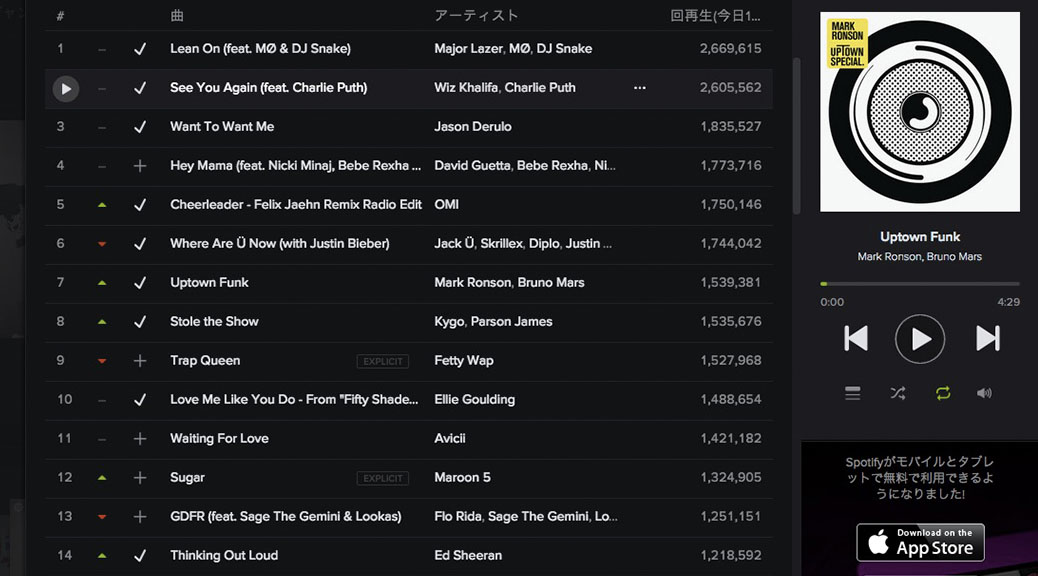 Spotify グローバルチャートTOP 10 (2015/06/06)